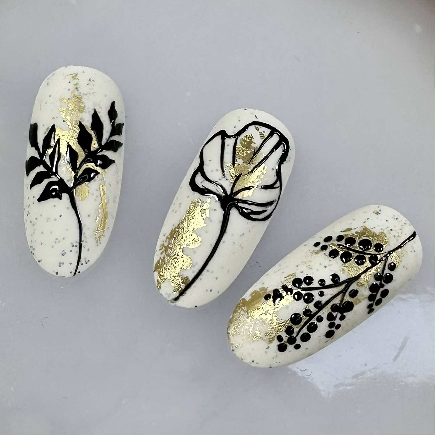 1. Lakk neglen med prikkete hvit/krem farge og herd i lampe.