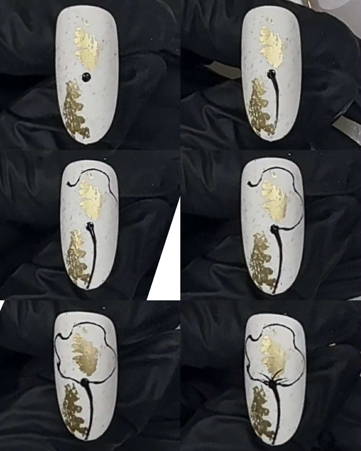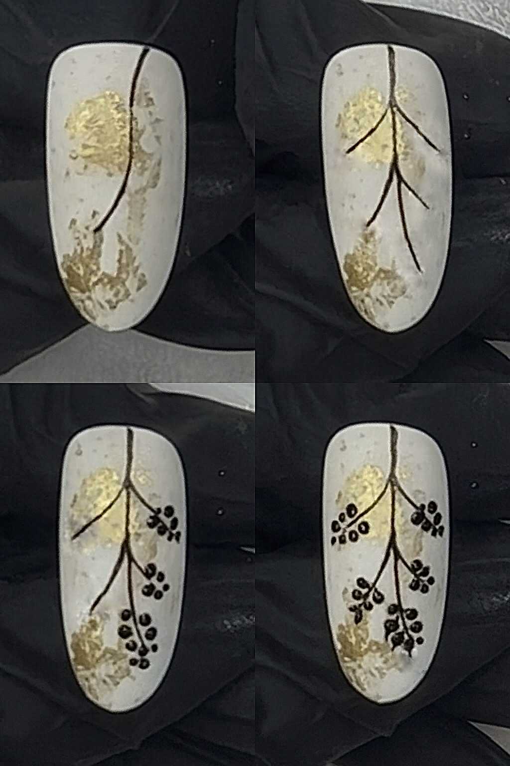 3. Legg en prikk med dotting pen i midten av neglen. Bruk deretter en presisjon børste til å lage en stilk nedover. Herd i lampe.