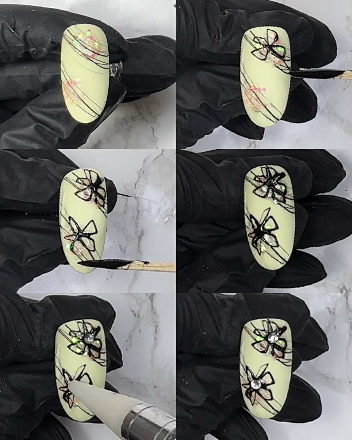 1. Start med å lakke neglen gul og herd i lampe.